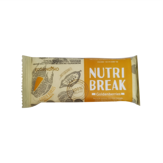 Ingredientes: quinua, maíz morado, maca, aguaymanto, cacao nibs, endulzado con jarabe de yacón.