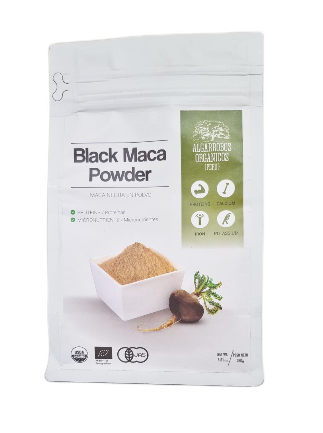 Ingredientes: Raíces de maca. La maca negra contiene una gran cantidad de vitaminas y minerales.